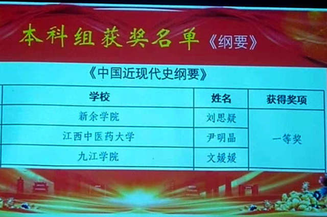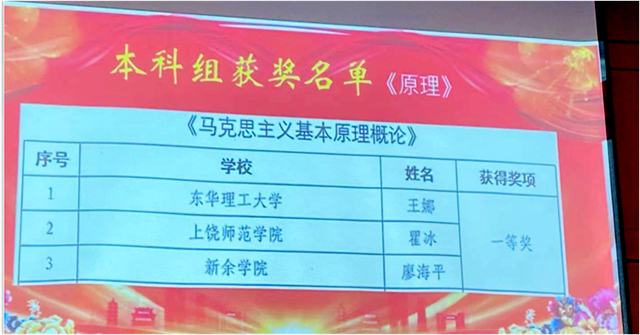 11月27-29日,由江西省教育厅举办的2020年度全省高校思想政治理论课青年教师教学基本功比赛在东华理工大学举行,来自全省70多所高校的224名选手参加比赛。我校马克思主义学院青年教师刘思疑、廖海平两位教师分别获得《中国近现代史纲要》组一等奖、《马克思主义基本原理概论》组一等奖。