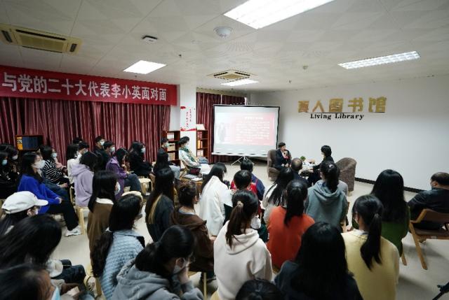(文/图书馆 李瑶 学生记者黄星莹 图/凌厚祥 )矢志不渝跟党走,踔厉奋发谱新篇。为深入学习贯彻党的二十大精神,11月25日下午,图书馆开展了以“平凡岗位的非凡人生——与党的二十大代表李小英面对面”为主题的聆悟真人图书馆(总第82期)活动。党的二十大代表、江西长运新余公交公司403线路班组长李小英应邀讲述自己如何在平凡岗位中践行初心、传播党的“好声音”,并鼓舞青年大学生朋友们努力学习、奋发向上。党委委员、副校长陈裕先出席此次活动,活动以线上线下相结合的方式进行。