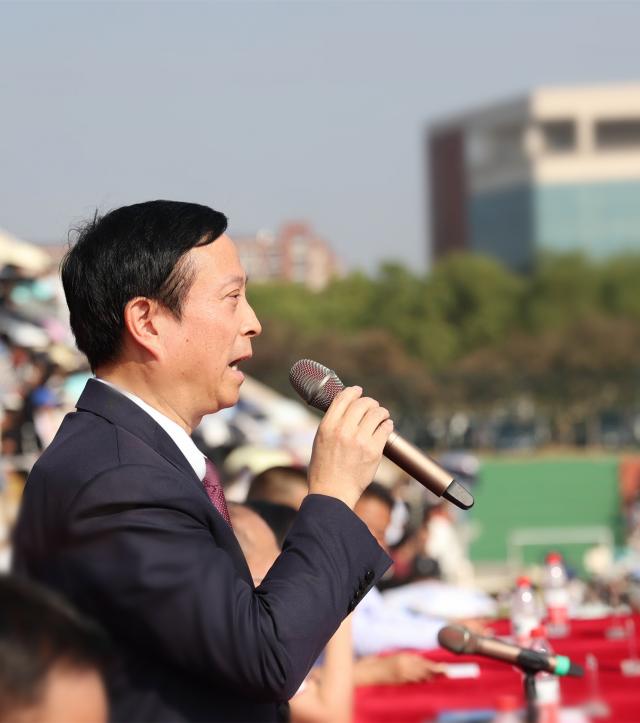 伴随着庄严的国歌声,仪式正式拉开帷幕。陈裕先首先对为推动学校体育工作建设、在本届省运会中为学校争得荣誉的广大师生表达感谢。陈裕先表示,此次运动会是学校深入学习贯彻党的二十大精神、深入贯彻习近平总书记关于教育和体育工作重要论述、推进教育教学改革的重要举措。希望全体运动员、教练员、裁判员以不断进取的奋斗姿态诠释“更快、更高、更强、更团结”的体育精神,真正赛出友谊、赛出风格、赛出水平;希望所有工作人员和广大志愿者精益求精、热情服务;希望全校上下以运动会为契机,进一步认真学习习近平总书记关于教育、体育的重要论述,激励全校师生奋发向上、顽强拼搏、团结奋斗、超越自我,为建设特色鲜明的高水平应用型本科院校贡献自己应有的力量。