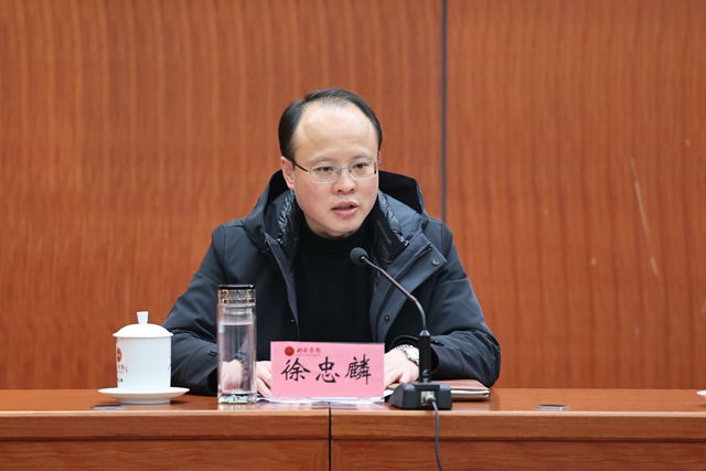 (文/党委宣传部 胡珊)2月10日上午,学校召开2023年春季学期全体中层干部会议,部署新学期各项工作。校党委书记李明斌出席会议并讲话。校长张玉清部署新学期重点工作。校党政班子成员徐忠麟、陈裕先、龚丽春、刘志勇、周文生、曾浩武、姚伟参加会议。学校各部门、各二级学院正副职、学校各民主党派、统战团体负责人参加会议。会议由党委副书记徐忠麟主持。