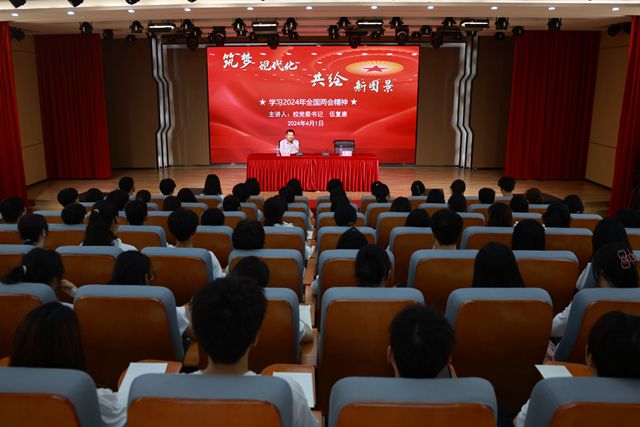 陈裕先首先回顾了2024年全国两会的主要议程和成果,强调了会议对于国家未来发展的重要性,并详细解读了政府工作报告中关于教育、科技、创新等方面的政策部署。随后,他重点解读了两会精神中关于新质生产力的内容。陈裕先要求学院全体教师要以高度的政治责任感和使命感,锚定学校第二次党代会确定的目标任务,聚焦打赢七大攻坚战,将认真学习深刻领会全国两会精神和校党代会精神融入教学科研和人才培养的全过程,将工作落到实处,抓出成效,为推进学校高质量发展贡献力量。