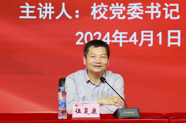 4月1日下午,学校文学院演播厅座无虚席,校党委书记伍复康为同学们带来以“筑梦现代化共绘新图景”为主题的思政课——学习2024年全国两会精神。校院两级学生会工作人员代表、团支书代表和青年团干代表等共计110人聆听了讲座。