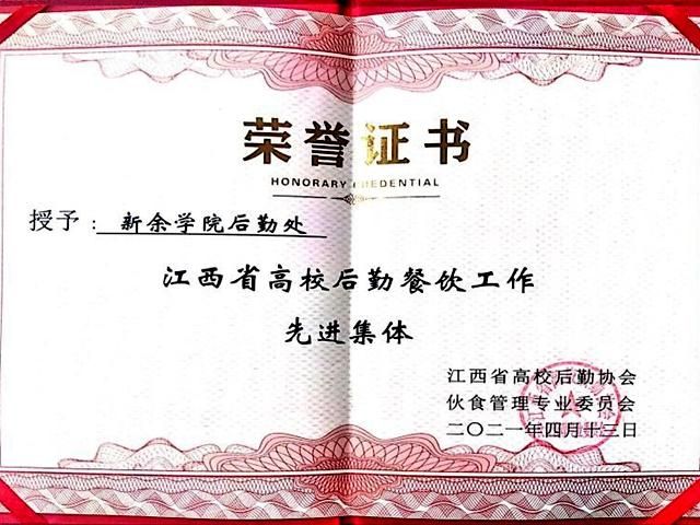 4月23日,江西省高校后勤协会伙食管理专业委员会会员代表大会暨2020年年会在九江学院召开。经过伙专会的认真评审,我校荣获2020年度全省“高校餐饮工作先进集体”。