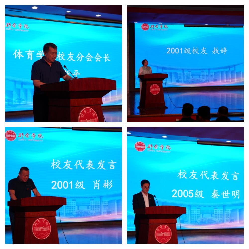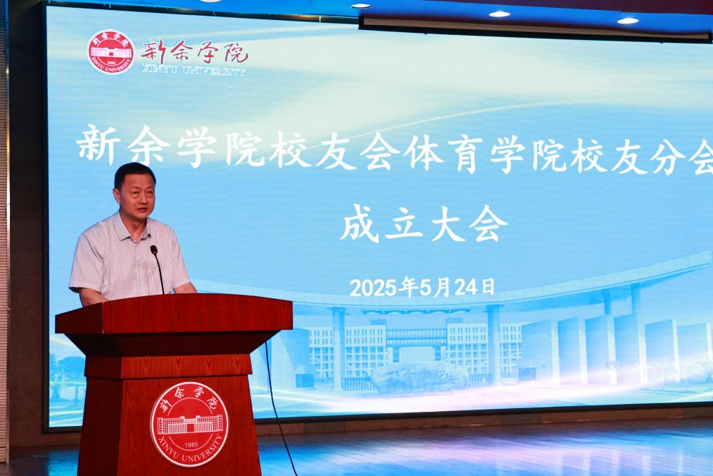 胡涌代表学校对新余学院校友会体育学院校友分会的成立表示热烈祝贺。他指出,校友是学校建设发展的重要依靠力量和宝贵资源,也是大学使命与功能的社会化延续和伸展,希望校友分会的成立,能够凝聚更多优秀校友回到母校,共同开创教育美好事业。他对校友分会工作提了三点期望:一是成为凝聚校友力量的“强磁场”,让校友会真正成为校友们情感寄托的温馨家园、事业发展的有力后盾;二是成为助力体育学院发展的“助推器”。积极母校建言献策、牵线搭桥,助力体育学院在高质量发展中迈出更大步伐。三是成为服务社会的“先锋队”。积极投身社会公益事业,为健康中国建设和社会文明进步贡献更多体育人的智慧和力量。