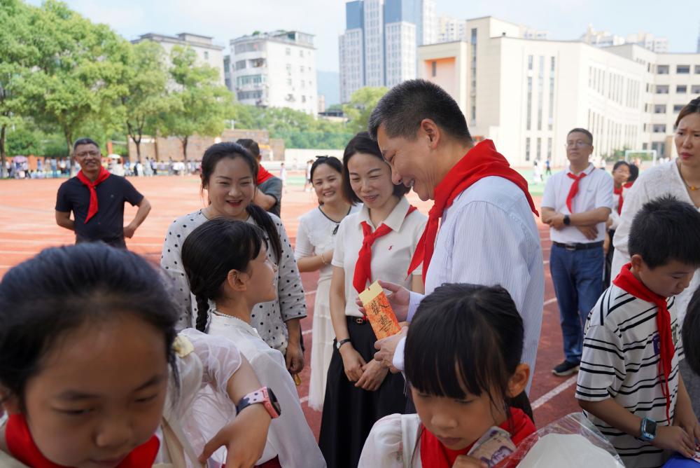 附属学校的校园披上了节日的盛装,充盈着孩子们的欢声笑语。伍复康戴上了少先队员献上的红领巾,认真聆听了红领巾讲解员的解说。他走进孩子们中间与他们亲切交谈,特别看望了全国少儿乒乓球赛冠军陈思杨,赞扬她少年立志为国争光,鼓励她保持这份斗志继续展翅翱翔。