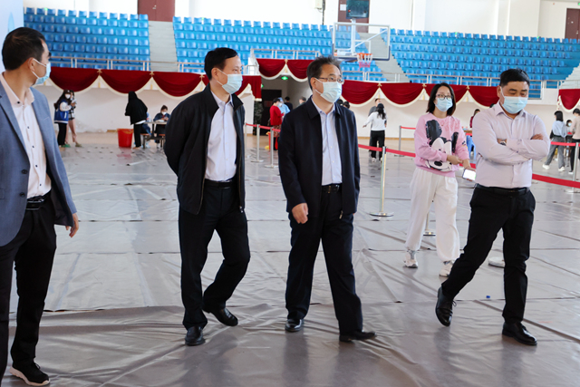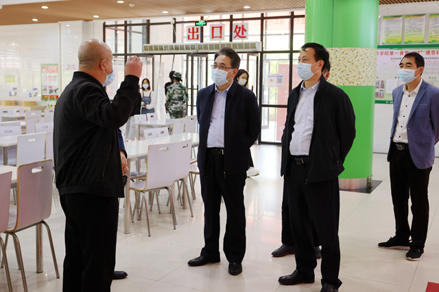 在学校南大门,李明斌、张玉清嘱咐相关部门要守牢疫情防控校门关,校外无关人员和车辆一律不得进入校内,所有进入学校的人员,须严格查验健康码、行程码及24小时内核酸检测阴性证明并按要求佩戴口罩。在核酸监测点,李明斌、张玉清详细了解核酸检测组织方式、现场秩序维护等工作情况,要求相关部门要高度重视,科学指挥调度,加强现场秩序管控力度,防止人员扎堆、聚集,要严格落实一米线、佩戴口罩等措施。要继续加强宣传教育,及时宣传解读防控政策,引导同学们自觉主动配合,严格遵守疫情防控工作各项要求,确保应检尽检。在食堂和校园超市,李明斌、张玉清了解窗口饭菜价格和超市物品供应,以及出入口的测温、口罩佩戴等疫情防控措施落实情况,要求严格落实测温、戴口罩、一米线等规定,快递进校园要严格消杀。在确保食品安全的基础上,不断丰富广大师生用餐多样性需求,确保校园生活必需品供应充足、质量放心、价格稳定。