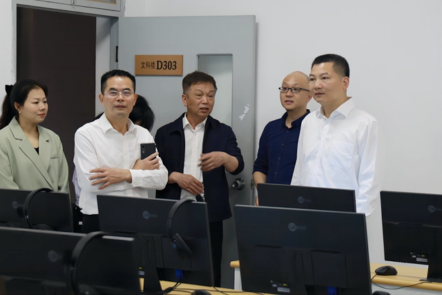 会前,伍复康实地考察了学院实验实训室、语音室、办公室等场所。