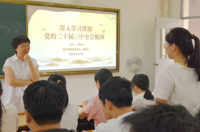 9月19日,校党委委员、副校长李敏为外国语学院2024级新生讲授开学第一堂思政课——深入学习贯彻党的二十届三中全会精神宣讲。
