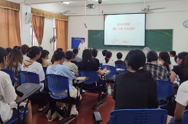 9月11日下午,校党委委员、宣传部部长曾浩武为文学与传媒学院院学生宣讲党的二十届三中全会精神。曾浩武运用大量生动事例,深入浅出地阐述了党的二十届三中全会精神。