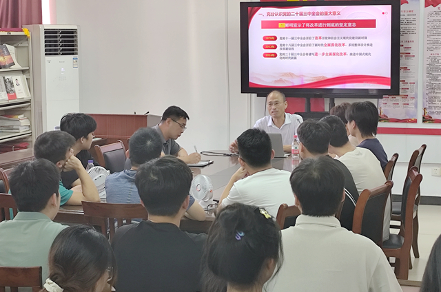 龚丽春从深刻领会和把握党的二十届三中全会的重大意义、进一步全面深化改革的总体要求、重大举措、根本保证和基本要求五个方面进行了全面系统、深入浅出的解读和阐释,内容丰富,视野开阔。龚丽春还结合生动案例鼓励大家学会运用马克思主义哲学观和辩证法分析解决问题,密切关注时政热点和国际形势,将自己的专业所学运用到实践之中,勇担时代赋予的责任。