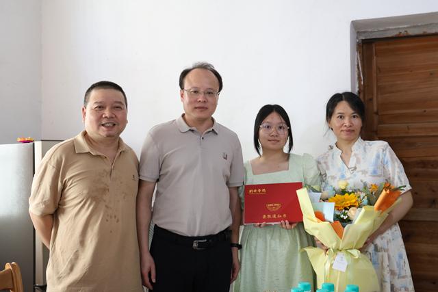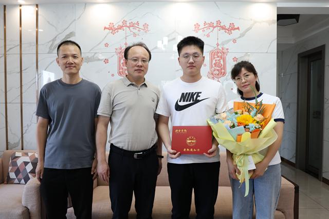 骄阳似火,烁玉流金。新余学院2024级新生的录取通知书如约而至!7月30日,校党委副书记、校长徐忠麟将录取通知书送到我校2024级新生代表——新余籍学生艾阳宇、何马星、黄诗晨手中,代表学校向他们表示祝贺,并亲手在通知书上签下名字,送上精心准备的书籍——《学习的力量——跟总书记读历史》和鲜花祝福。