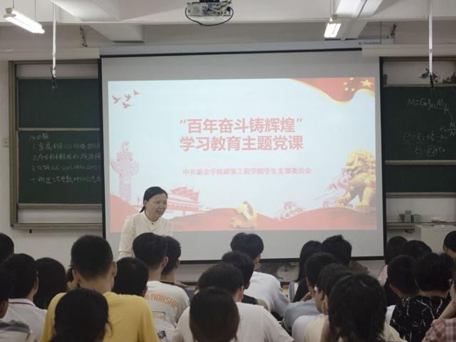 5月13日晚,校党委委员、副校长龚丽春于主D多媒体8为建筑工程学院学生党支部讲授“百年奋斗铸就辉煌”主题党课。龚丽春与在场的学生党员们分享了自身学习党史的心得,她深入浅出地从理论成果、实践成果以及精神成果三个方面概述了中国共产党百年奋斗历程。她强调必须要带着信仰学、带着感情学、带着责任学,学有所思、学有所得、学有所获,从党史中汲取奋进向上的力量,汲取爱党爱国的力量。整堂党课气氛热烈,在场的学生党员纷纷表示,通过对党史的学习更加深刻地认识到,中国共产党走过的百年历程,是中华民族发展史上不能忘却、不容否定的壮丽篇章,作为新一代的年轻人必须认清历史发展的规律,坚定爱国爱党的信念和宗旨,在思想和行动上适应新形势的发展和要求,为实现中国梦贡献自己的力量。