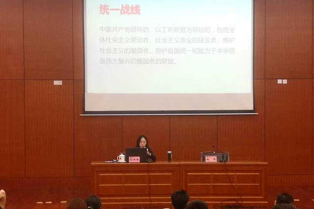 随后,新余市委党校刘雨婷应邀作了题为“习近平总书记关于加强和改进统一战线工作的重要思想”专题讲座,主要从其思想渊源、核心要义和实现路径三个方面进行了深入阐释和解读。她表示,习近平总书记在去年中央统战工作会议上用把握好“四个关系”和“十二个必须”为做好新时代统战工作提供了重要遵循。刘雨婷的授课逻辑严密、内容详实、理论性强,对我们全面理解和把握党的二十大精神具有很强的指导性和启发性。