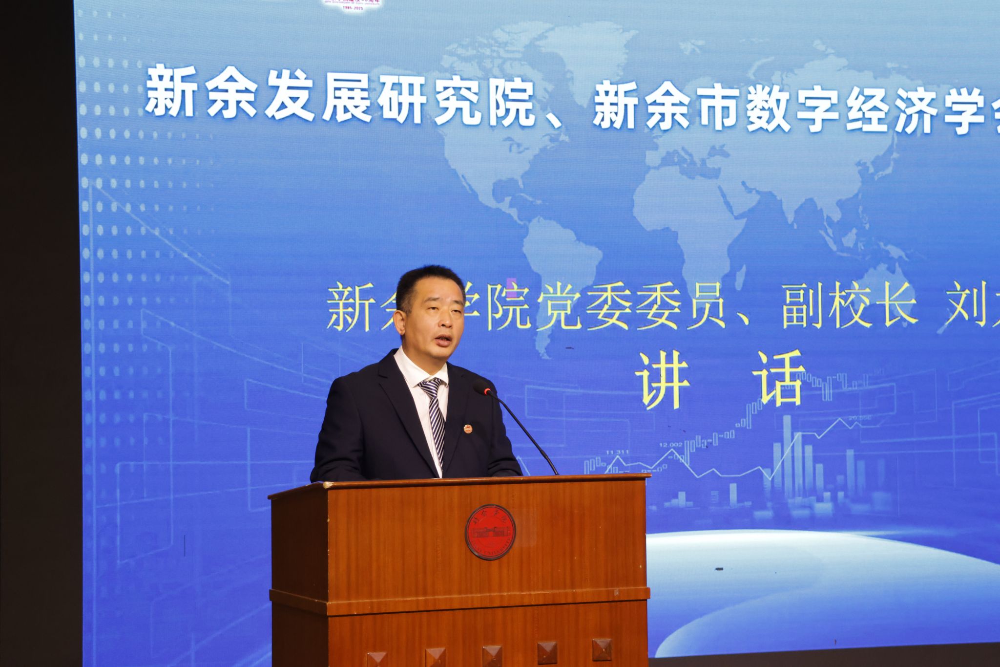 刘力恒在致辞中指出,新余学院始终坚守“立足新余、服务地方”的办学定位。新余学院新余发展研究院与新余市数字经济学会的成立,恰逢学校建校40周年的重要节点,既是校地合作向纵深推进的关键举措,更是深化产教融合、赋能地方发展的重要里程碑。他希望两大平台以成为“智囊团、连接器、孵化器”为发展目标,精准聚焦地方产业发展痛点与需求,着力推动科技成果就地转化与高效应用,精心培育兼具技术素养、产业认知与政策视野的复合型人才。学校将在政策支持、人才保障、资源供给等方面持续发力,为新余发展研究院与新余市数字经济学会的建设与高效运行提供全方位、强有力的支撑,使其成为校地协同发展的实践典范。