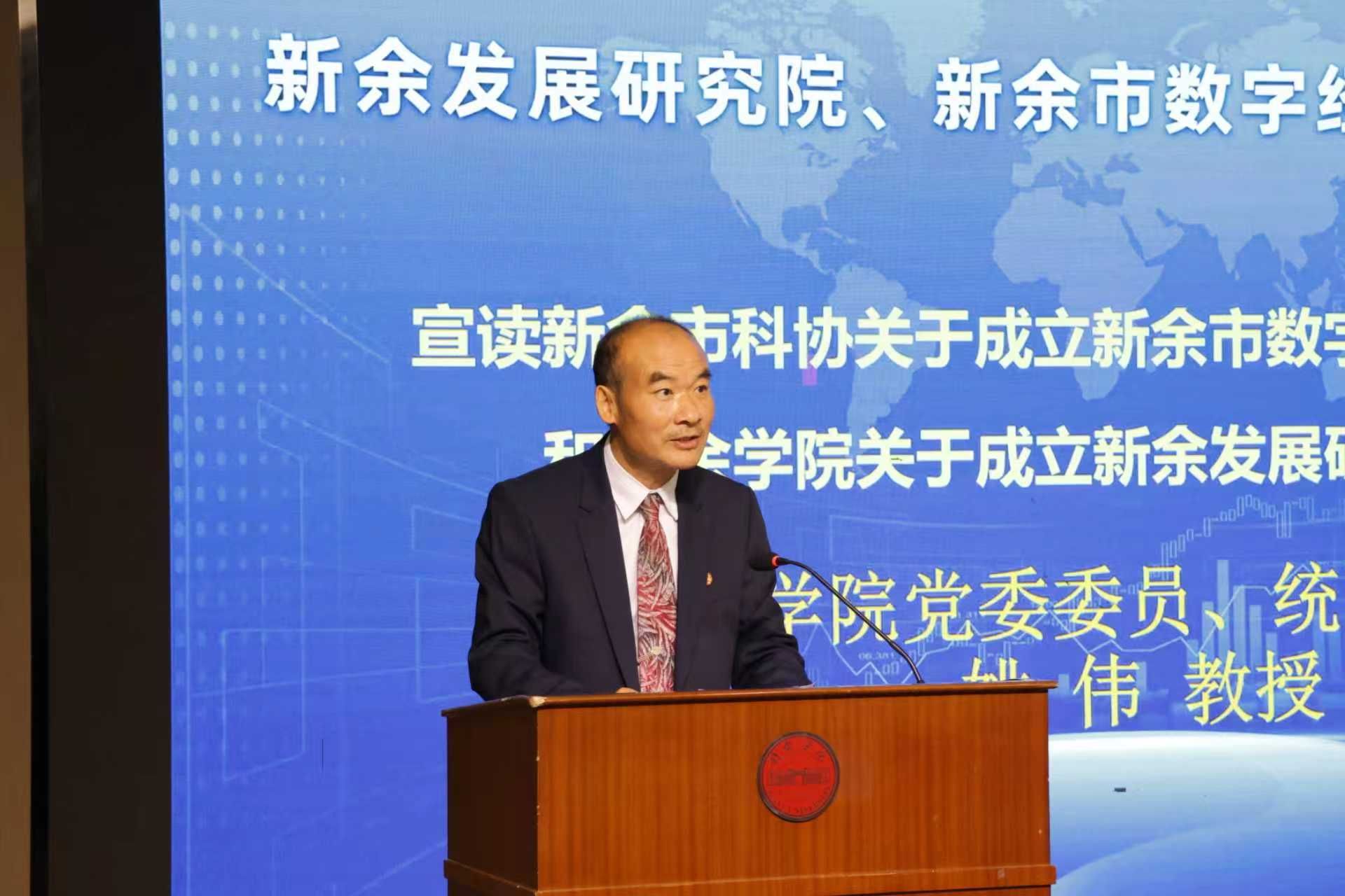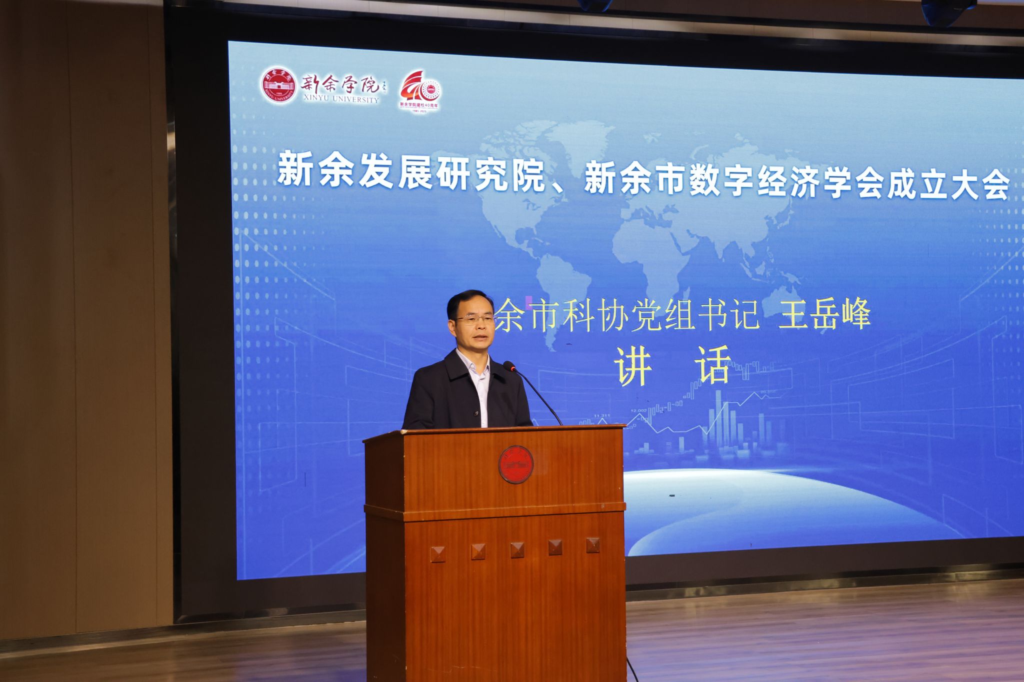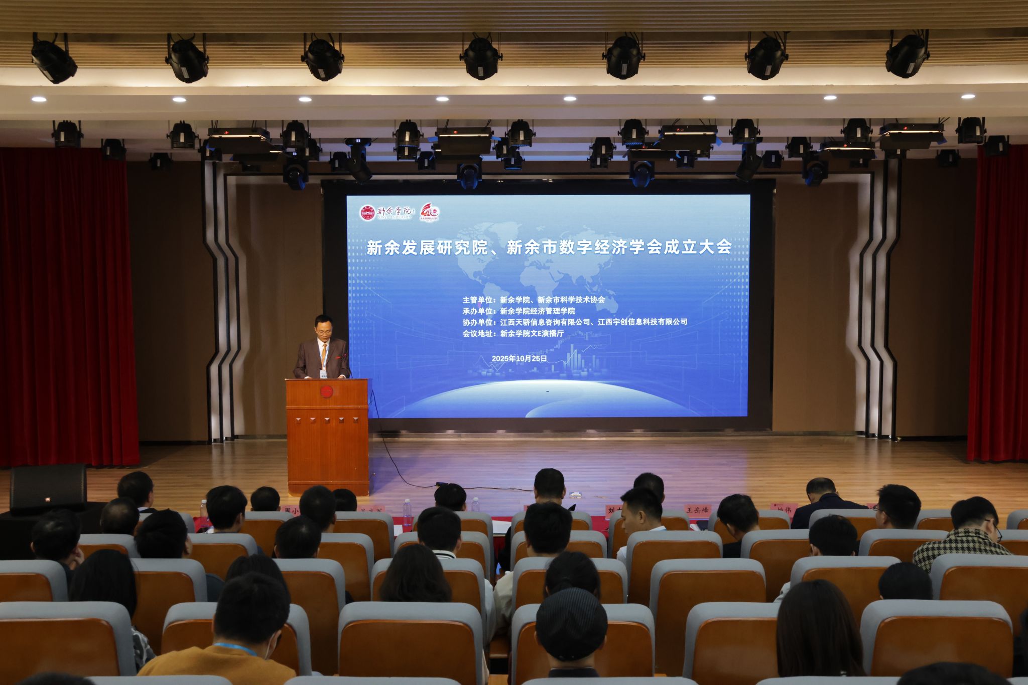 10月25日下午,新余学院建校40周年之际,新余学院新余发展研究院与新余市数字经济学会成立大会在新余学院文科楼E座演播厅举行。新余学院党委委员、副校长刘力恒,新余市科协党组书记王岳峰,新余市社会科学联合会党组书记、主席尹晓林,新余学院党委委员、统战部部长姚伟出席会议,新余发展研究院全体研究员、新余数字经济学会会员和部分师生代表参加大会。会议由经济管理学院院长王茂洋主持。
