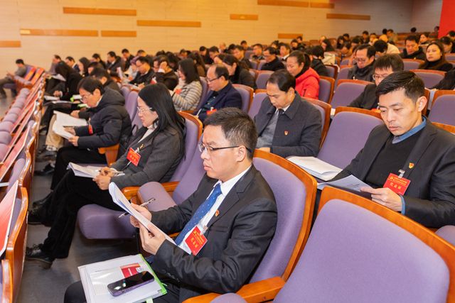 会场气氛庄严热烈。主席台上方悬挂着“中国共产党新余学院第二次党员代表大会”会标,帷幕正中悬挂的党徽熠熠生辉,十面鲜艳的红旗分列两侧。