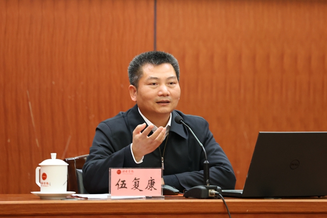 12月7日下午,校党委书记伍复康宣讲习近平总书记考察江西重要讲话精神。学校党政班子成员,副处级以上干部、教授代表、党外人士代表共计120余人聆听了报告。本场报告会由校党委副书记徐忠麟主持。