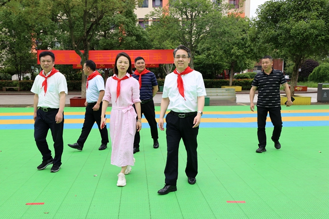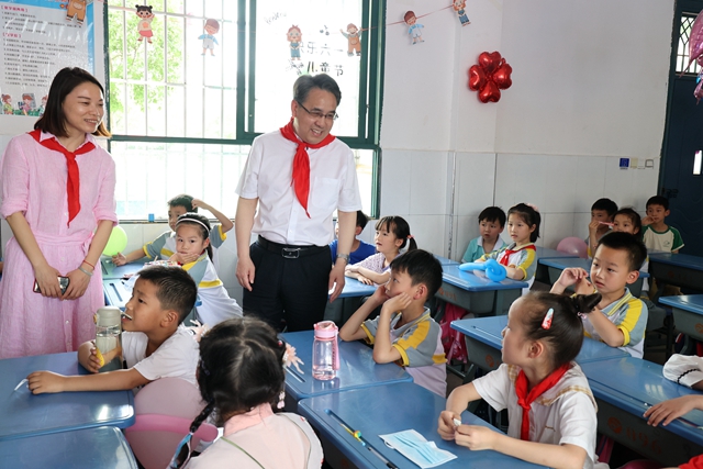 走进校园,少先队员们为李明斌一行戴上了鲜艳的红领巾,李明斌饶有兴致地参观了校园环境,并走进教室与小朋友交流互动,叮嘱他们快乐学习、健康成长。附属学校负责人对学校校情、师资建设、校园文化等方面进行了简要汇报,并介绍了学校开展“生活小能手、红领巾飘扬、欢乐迷你购、创意江西秀、红色文化颂、职业微体验”等庆祝“六一”活动情况。