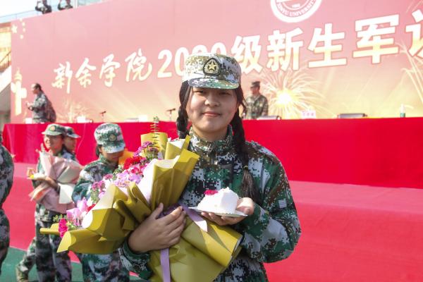 当日上午10时许,在表彰完优秀学员及优秀教官后,田径场上出现了暖心的一幕,随着一首欢快的生日歌逐渐响起,生日蛋糕被推入现场,在场2800余名师生为当天过生日的15名参训新生一同唱起了生日快乐歌。同时,校领导还为这几位过生日的同学送上鲜花和亲切的祝福,惊喜下的温馨和喜悦让2020级新生们惊喜不已,现场气氛十分温馨感人。机电学院赵佳欣同学说:“很感谢学校为我们准备那么大的惊喜,来到新余学院的第一个生日和这么多人一起过,还有学校领导为我们切蛋糕,真的很温暖,很感动。在今后的学习生活中一定积极努力,以更好的成绩回报学校领导老师的关心”