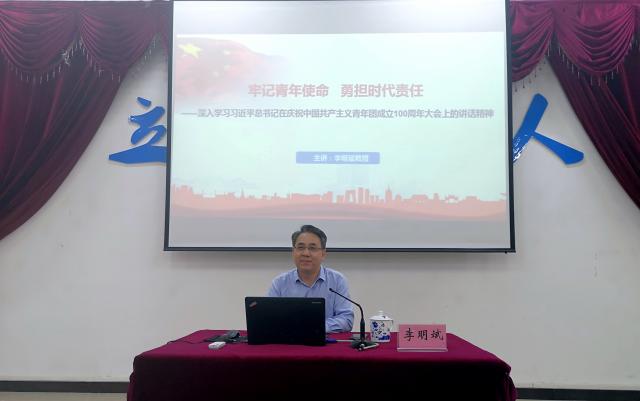 李明斌以《牢记青年使命 勇担时代责任——深入学习习近平总书记在庆祝中国共产主义青年团成立100周年大会上的重要讲话精神》为题,从“中国青年是实现中华民族伟大复兴的中坚力量、当代青年要担负起实现第二个百年奋斗目标的历史重任、努力用实学实干书写青春答卷成就青春梦想”等三个方面进行了深入阐释。李明斌强调,国家的希望在青年,民族的未来在青年。新时代的青年,成长在一个最好的年代,生逢其时,重任在肩。希望广大青年树立远大理想抱负,做一个有理想、敢担当、能吃苦、肯奋斗的新时代好青年,坚定不移听党话、跟党走,努力成为堪当民族复兴大任的时代新人。李明斌讲授的思政课既有理论的深度,又有现实的温度。