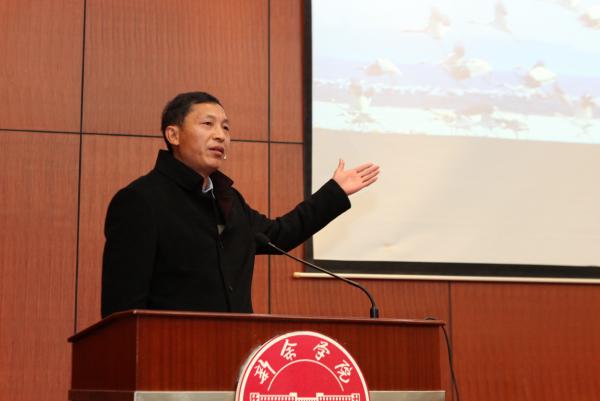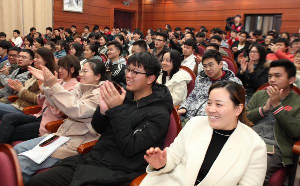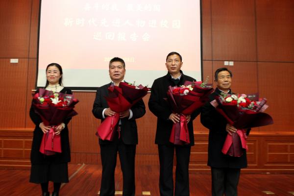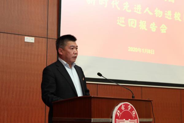 1月8日下午,江西“奋斗的我最美的国” ——新时代先进人物进校园巡回报告会在行政楼一楼报告厅举行。邓大庆、李跃、廖志平、李琴四位先进人物代表走上讲台,围绕“奋斗的我 最美的国”这一主题,从不同角度、不同侧面讲述了他们的人生历程和奋斗经历,各二级学院师生代表近200人共同聆听了这一堂精彩的思政大课。校党委委员、宣传部部长周文生主持报告会。