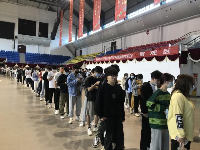 经过前期精心、周密的组织,同学们排着整齐的队伍,有序进入馆内,依次采样,两小时左右即全部完成。最后,975名同学检测结果均为“阴性”。