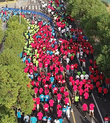 此次比赛赛道边设置了多个医疗点和饮水站为参赛选手们提供服务。活动开始前,在沿外环绕校园2圈总赛程为6公里的跑道上,各参赛选手有序的站在指定地点,精神饱满,蓄势待发,等待发令枪的一声令下。比赛中,参赛选手们丝毫不懈怠,坚持不懈,展现了我校师生积极向上、勇于拼搏的良好风貌和青春的气息。赛道旁边的同学们热情洋溢地为选手们呐喊加油,活动氛围浓烈。