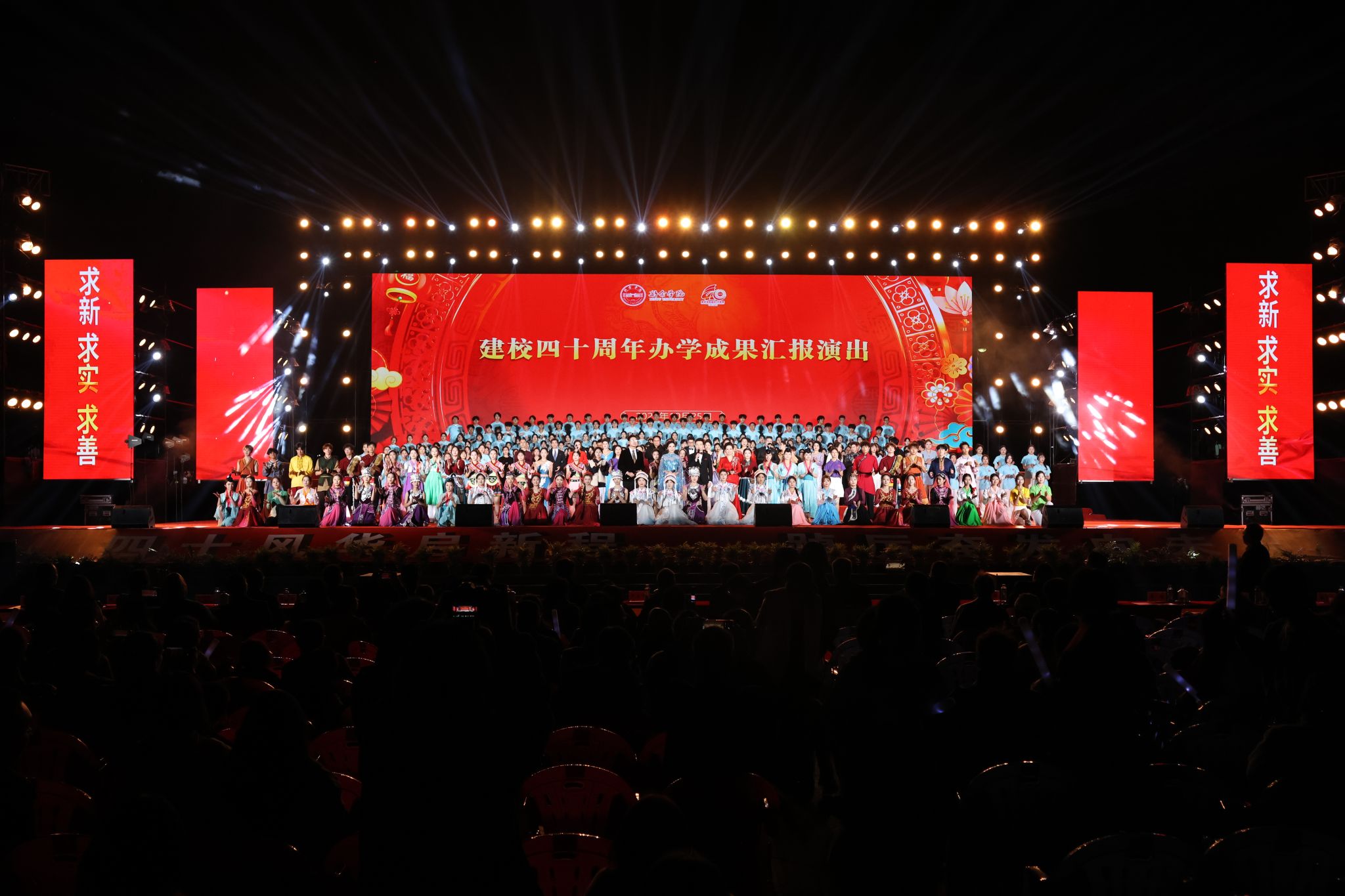 为全面总结新余学院建校40年以来的办学成果、生动诠释“育人为本、德育为先、能力为重、全面发展”的办学理念,10月25日晚,新余学院建校40周年办学成果汇报演出在梦想广场隆重举行。校党政班子成员,学校副厅级干部,离退休老领导、老同志,校友嘉宾和五千余师生现场观看演出,近万名观众线上同步观看直播。