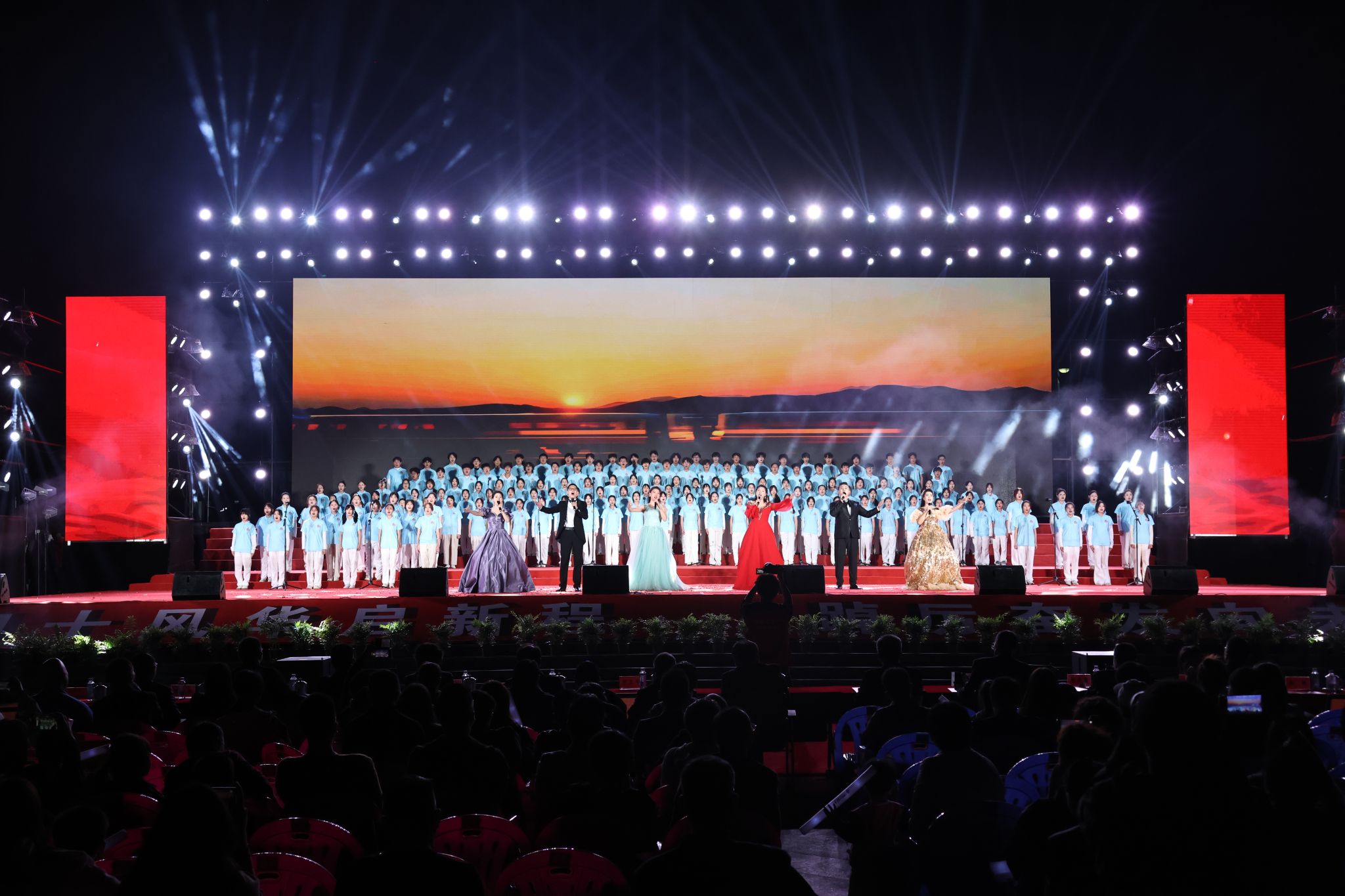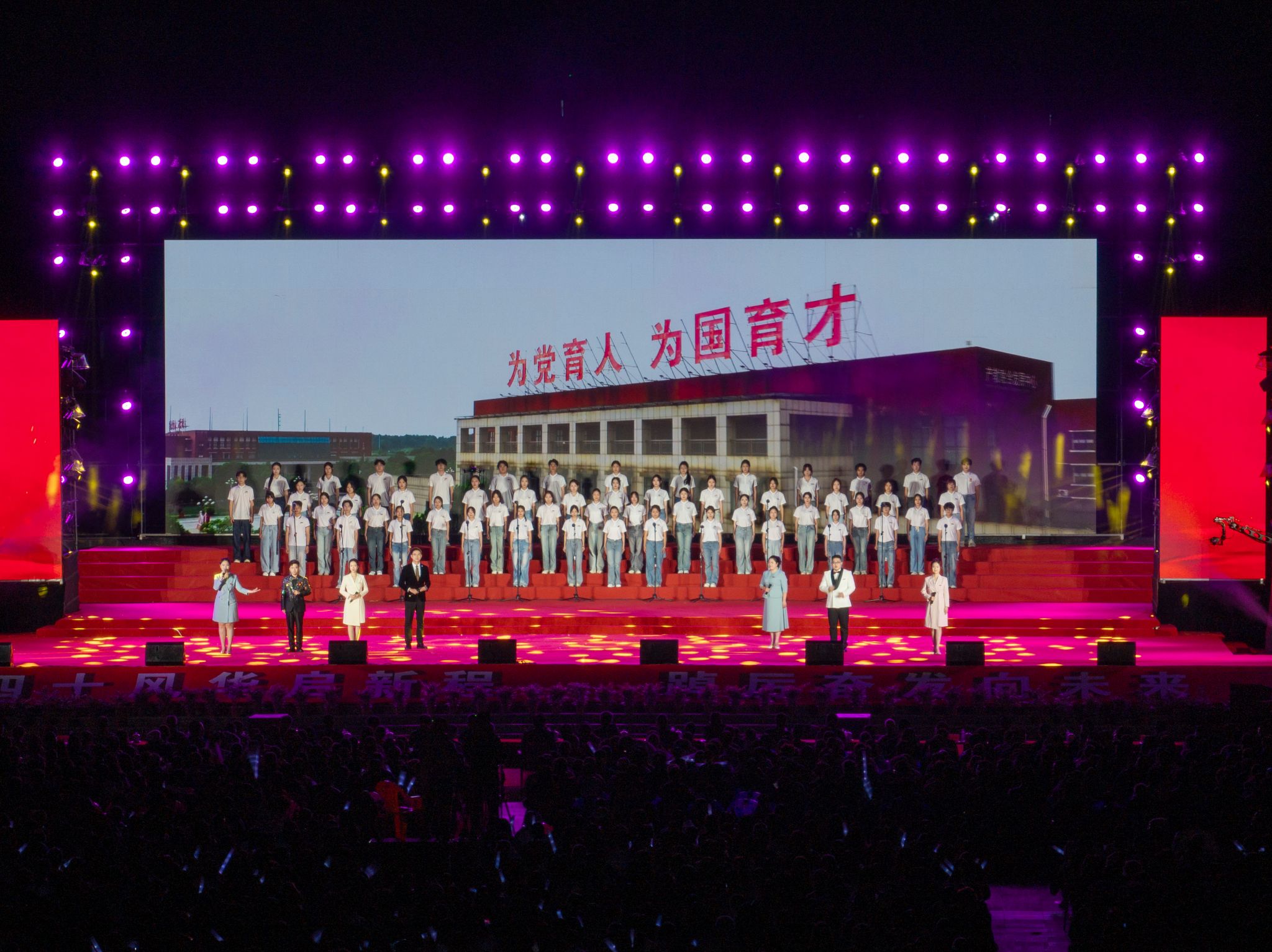 最后,晚会在大合唱《再一次出发》《歌唱祖国》中落下帷幕。全场师生、校友齐声歌唱,用歌声,唱响迈向新征程的昂扬姿态,唱出祝福祖国的赤子之心。