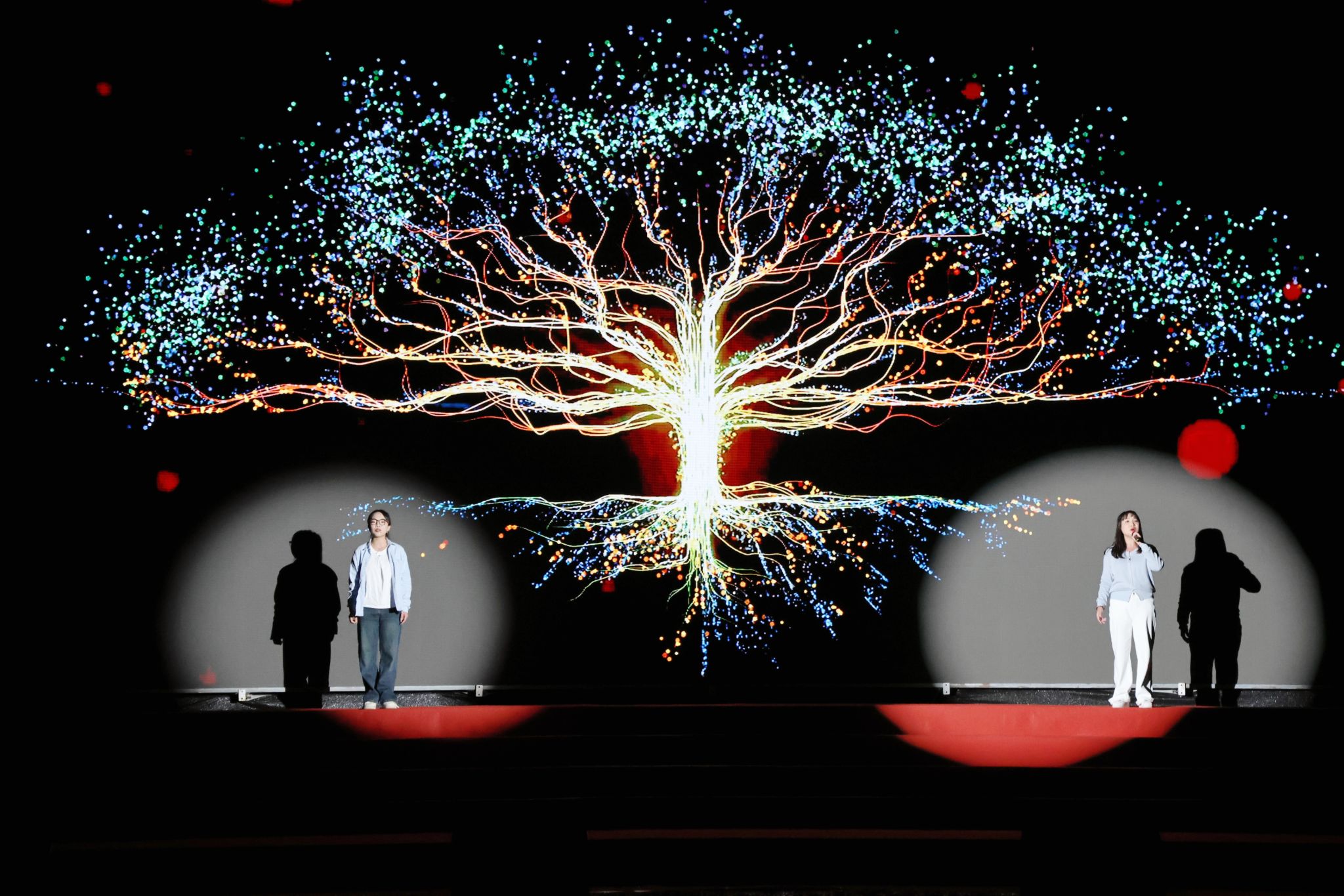 第三篇章“绽放”,情景剧《青春在这里闪光》,讲述了新院学子、“全国脱贫攻坚先进个人”樊贞子扎根基层、服务社会的动人故事。这位最美95后,用生命诠释了新时代青年的责任与担当,她的赤子之心,感动了在场每一个人。舞蹈《清·莲》,以“出淤泥而不染”的清莲为意象,舞者以灵动的舞姿,展现清莲的洁雅风姿,致敬教育者们深耕教育的赤诚与担当。黄志清老师独唱《春风十万里》,歌声如春风拂面,温暖而醇厚,婉转悠扬间饱含着对学校的深情,唱响学校面向未来的壮美画卷。