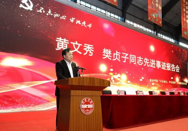 今天我们在这里举行黄文秀、樊贞子同志先进事迹报告会,举行忠诚宣誓仪式,这是学校“不忘初心、牢记使命”主题教育的重要安排,是学校落实立德树人根本任务,答好“时代之问”,走好新长征路,回答“为谁培养人、培养什么样的人、怎样培养人”这个教育根本问题的重要举措,也是学校打造忠诚高校的落实、落细的形式之一。