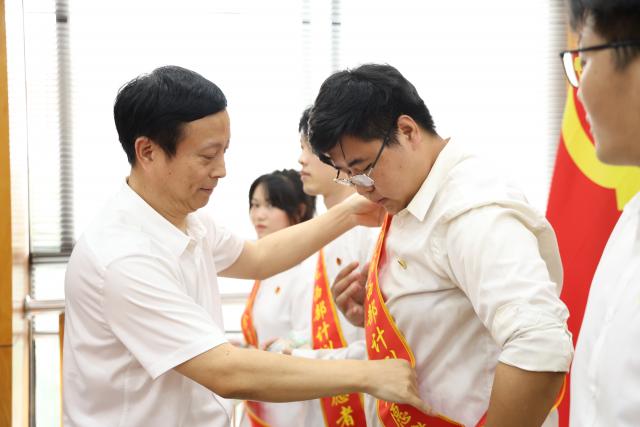 出征仪式上,校团委负责人介绍了今年学校西部计划志愿者工作开展情况。张玉清为2023年西部计划志愿者代表佩戴绶带、赠送书籍《习近平与青年朋友们》,并向志愿者们提出殷切希望,希望志愿者们不辜负党和祖国人民的期望,不辜负学校和亲人的嘱托,要怀揣爱国情怀、远大理想,用自己的聪明才智,用自己的热情和力量,在艰苦中实干,在奉献中成长。张玉清还用自己服务西部的经历勉励志愿者们,人生是一个不断积累的过程,要多忠实做人、踏实做事,把“感恩、担当、力行、卓越”作为生活的座右铭,将新余学院学子奋勇争先的精神带到祖国最需要的地方去。