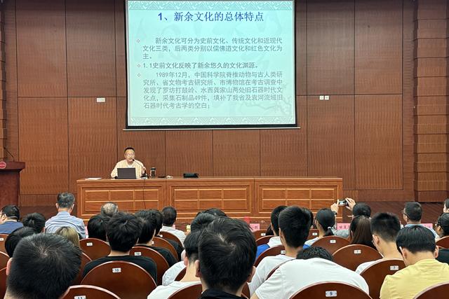 省旅游文化研究会副秘书长聂朋结合自身曾在新余博物馆工作二十年、在仙女湖旅游开发办负责宣传的工作经历,以“新余历史文化漫谈”为主题,将新余市的历史起源、变迁、发展、红色文化和著名历史人物的研学实践娓娓道来,让在座毕业生进一步了解到新余深厚的文化底蕴和各个历史时期著名人物的生活足迹及为社会进步所作出的卓越贡献。