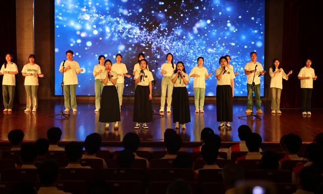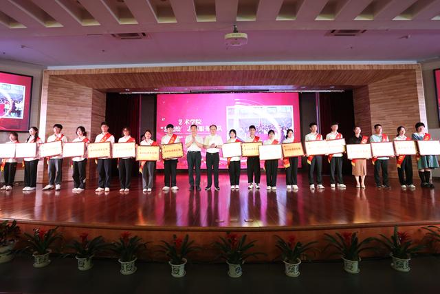 表彰大会在歌曲表演《一路生花》优美动听的旋律中拉开帷幕。大会共分为“爱国青春底色”“求真青春筑梦”、立志青春之志”“力行青春使命”四个篇章。精彩的《信仰之光、青春之志》《以青年之肩,担国之未来》等节目演绎、颁奖环节、优秀学生代表访谈等贯穿着每个篇章,全方位展示着我校学子的崇高理想和远大抱负,他们志存高远、脚踏实地,以实际行动诠释着青年的时代担当。优秀个人与先进集体的典型事迹,鼓舞人心、催人奋进。全员上岸“国家电网”学霸寝室的同学、“并肩前行”的考研情侣以及励志优秀学生等分别分享了他们关于学习及生活的认识和体会,讲述了他们在大学生活的奋斗故事。大会在现场500余名师生齐唱《我的未来不是梦》的歌声中落下帷幕。