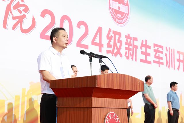 文学与传媒学院2024级播音与主持艺术班段晓旭同学,中国人民解放军驻新余某部王彭同志分别代表新生和教官做了精彩发言。