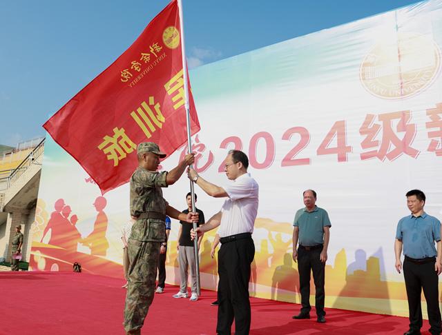 最后,校党委副书记、校长徐忠麟向承训部队授旗,并宣布2024级新生军训正式开营。
