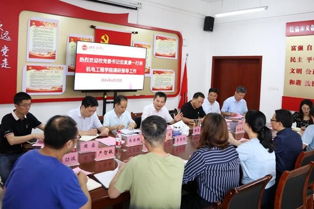 6月20日下午,校党委书记伍复康到机电工程学院调研指导工作,党委委员、组织部部长周文生,相关部门负责人陪同调研、机电工程学院领导班子成员及科室负责人参加调研座谈会。