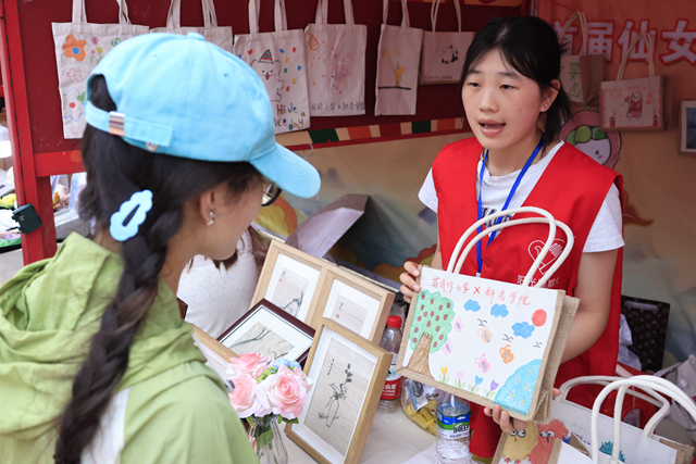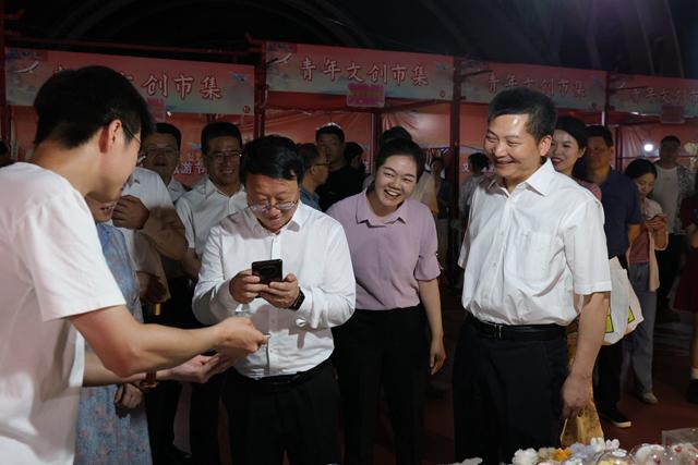 活动过程中,我校青年学生设置六个专属文创市集摊位,展出作品包括环保创意手工、手绘包、夏布绣、3D打印作品等,各类作品将传统文化与潮酷设计相结合,将专业巧思和手工作品相结合,获得游客一致好评,纷纷驻足欣赏选购。林坤等领导来到我校文创市集摊位,与同学们热情交流,询问产品创意灵感,畅谈活动感受,交谈间,林坤还掏出手机扫码购买学生自创的3D打印钥匙扣,并为我校学生点赞。他希望我校青年大学生通过参与活动,深入了解新余,在感受新余社会文化的同时,能够思考将专业所学和服务地方社会经济发展相结合,为打造新型工业强市、奋力谱写中国式现代化新余篇章贡献新余学院学子的智慧力量。