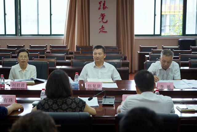 走访中,伍复康与附属学校班子成员进行了座谈交流,听取了附属学校负责人胡飞对学校五育并举和思政课程建设、校园安全、党纪学习教育等工作汇报。他强调:教育的根本任务是立德树人,培养德智体美劳全面发展的社会主义建设者和接班人。要切实抓好思政课程与课程思政建设;要以党纪学习教育为重点,深入开展好基础教育不正之风和腐败问题的专项治理工作,涵养清风正气的育人环境;要以“时时放心不下”的责任感筑牢校园安全防线,并就学校发展中存在的困难问题进行研究部署。并肯定了附属学校优质的办学质量为新余教育民生事业取得的突出成效,也是新余学院的一张“办学”名片;勉励学校要不断提高办学水平,强化党建引领,全面贯彻落实“双减”政策,践行“五育并举”,坚持立德树人,不断提升人民群众对学校教育的幸福感、获得感和满意度。