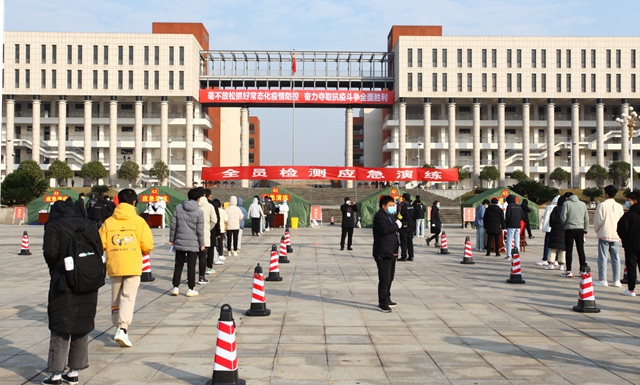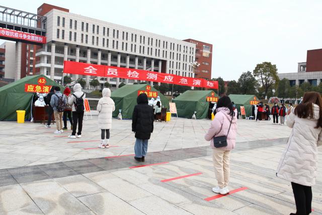 12月19日,江西省应对新冠肺炎疫情大规模核酸检测应急演练在新余市举行,我校作为全市5个核酸检测采集点之一参加了应急演练。省疫情防控应急指挥部副指挥长、省卫健委主任王水平以及省、市两级疫情防控应急指挥部有关领导和人员到场观摩指导。校疫情防控领导小组组长、党委书记刘冬、校长张玉清及校党政班子成员陈裕先、李敏、龚丽春、徐忠麟、张发云、姚伟、周文生、曾浩武到现场观摩指导。本次演练全校共设有八个采样点,近万名学生参与。通过演练,全面提升了我校应对今冬明春可能出现的新冠肺炎疫情的应急处置能力,共筑疫情防控的“防火墙”。