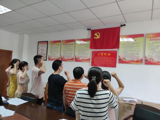 近日,数学与计算机学院开展了庆“七一”系列活动。活动包括主题党日活动、重温入党誓词、上党课和过政治生日。主题党日活动中,教工党支部和学生党支部分别组织党员学习了2020年全国两会精神和新余市委书记蒋斌同志的讲话精神。重温入党誓词中,党员佩戴党员徽章,面向党旗隆重宣誓,宣誓现场既严肃简朴,又体现了庄严感和仪式感。党课围绕“认真履行党员义务 ,正确行使党员权利”主题展开。在过政治生日活动中,6月份入党的党员分享了当年入党的故事和入党以来的感受;活动最后,党组织向党员赠送了生日贺卡,增强了党员的入党归属感和荣誉感,营造了和谐的政治氛围。通过系列活动,全体党员接受了一次深刻的心灵洗礼,有力地提高了党员的政治觉悟,有效地激发了党员为党争光、创新争优的工作热情。在今后的工作学习中,各党支部党员将继续坚持学习,提高政治觉悟,加强党性锻炼,坚定理想信念,坚信根本宗旨,加强责任担当,为学校改革发展各项工作贡献力量。