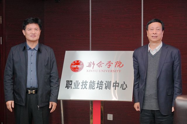 在与会人员见证下,张玉清和何志勇共同为新余学院职业技能培训中心揭牌。