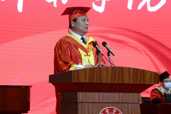 刘冬书记向圆满完成学业的2020届毕业生表示热烈祝贺,向精心培育学生、为同学们倾注心血的老师、家长表示衷心的感谢和崇高的敬意。刘冬表示,四年来,同学们在这所充满青春活力的校园,汲取知识智慧,书写阳光故事,锤炼了品德修养、夯实了专业基础、学会了做人处事。用勤奋铸就了学业、用创新点亮了生活、用汗水浇灌了梦想。他向毕业生们提出了三点希望,一是要坚定理想信念,胸蕴家国情怀。希望同学们牢记习近平总书记的谆谆教导:坚定理想信念,站稳人民立场,练就过硬本领,投身强国伟业。紧跟时代步伐,把个人理想融入国家和民族的事业中,把自己的努力方向同国家前途、民族命运和人类福祉紧密结合起来,在拥抱世界的人生征途中,在纷繁复杂的社会万象里,把明方向,坚定信念,不辜负党的期望、人民期待、民族重托,不辜负这个伟大的时代。二是要敢于接受挑战,勇于砥砺奋斗。“青春由磨砺而出彩,人生因奋斗而升华”。希望同学们在今后面对困难时挺身而出、主动担当,不断超越自我,实现人生价值。直面所有人生逆境,保持刚健勇毅,敢想敢干、敢试敢闯,用奋斗书写青春华章。三是要坚持终生学习,勤于修身养德。希望同学们继续学习,丰富知识储备,开拓视野,跟上时代步伐。坚定内心,以德润身,严于律己。与真理为伴,做一个有良好品德的人。