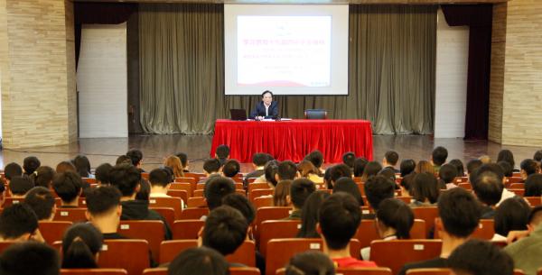 11月15日下午,校党委书记刘冬在图书馆学术讲堂,以“坚持和完善中国特色社会主义制度,推进国家治理体系和治理能力现代化”为题向学校全体政治辅导员、团学干部和学生党员共计400余人宣讲党的十九届四中全会精神。