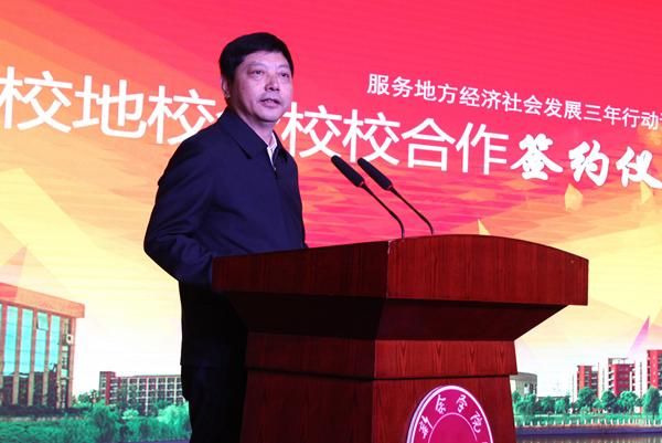 刘冬在致辞中代表校党委、行政及全校师生向前来参加签约仪式的各位领导和同志们表示热烈的欢迎和衷心的感谢。他表示,学校按照对接地方优势产业,服务新余发展大局的指导思想,以培养“品德素养好、应用能力强、就业有实力、发展有后劲”的高素质应用型人才为主要目标,不断优化课程结构和人才培养模式,强化全员、全过程、全方位育人理念,教育教学质量稳步提高。近年来,学校积极推进转型发展,走出了一条产学研合作的发展道路。他强调,学校将以此次签约为新的起点,进一步加强与兄弟院校、各市县区、企业的合作交流,不断拓宽办学渠道,提升办学质量和水平,为学校更好地服务钢铁、新能源、光电信息、装备制造、机械机电、生物医药等重点产业打下坚实基础。希望学校有关教学单位和部门主动加强与兄弟院校、各市县区、企业的对接工作,积极寻找合作的切入点,开展互动交流,多开展技术攻关合作,使合作不断常态化,真正实现双赢的良好局面。