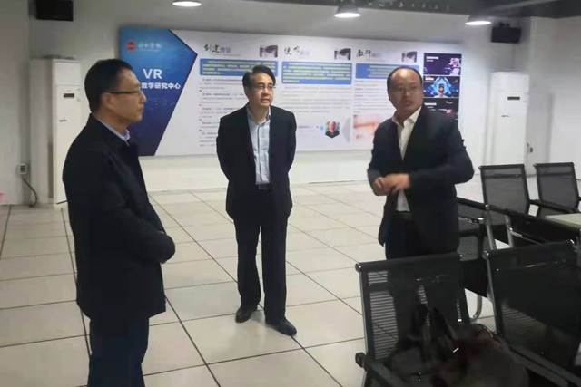 在我校VR思政教学研究中心举行的座谈会上,马克思主义学院负责人对唐国战一行的到来表示热烈欢迎,并简要介绍了我校马克思主义学院学科建设和运用VR技术融入思政课教学改革有关情况。唐国战简要介绍了信阳师范学院马克思主义学院学科专业建设情况。双方就马克思主义理论学科及思想政治教育专业建设、人才培养、师资队伍建设等进行了探讨交流,达成了共识。