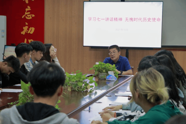 10月14日晚,校党委委员、纪委书记刘志勇在文A党员活动室为经济管理学院学生上了一堂主题为“学习七一讲话精神,无愧时代历史使命”的思政课。