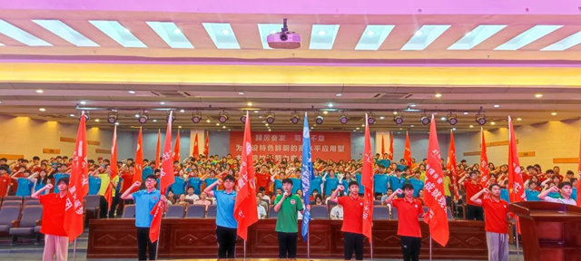 仪式上,校领导为2023年暑期“三下乡”社会实践团队授旗。各队队长接过队旗,并用力挥舞旗帜,表达了广大学生志愿参与暑期社会实践、迎接社会磨炼的决心。机电工程学院教师李倩倩和经济管理学院学生聂莹分别作为教师代表和学生代表发言。志愿者代表吴浩荣同学带领全体志愿者进行出征集体宣誓。