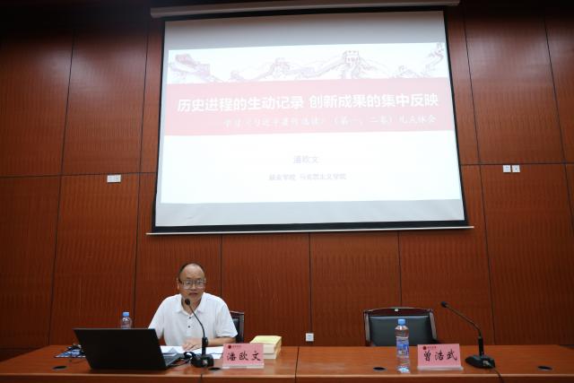 潘欧文围绕《习近平著作选读》的重要意义、理论逻辑、实践逻辑等方面作了题为《历史进程的生动记录创新成功的集中反映》的辅导报告。他表示要全面系统深入把握习近平新时代中国特色社会主义思想的核心要义、精神实质、丰富内涵、实践要求,做到知其言更知其义、知其然更知其所以然,坚持不懈用习近平新时代中国特色社会主义思想凝心铸魂。辅导报告提纲挈领、深入浅出,具有较强的理论性和实践性,对我校干部认真读好学好《习近平著作选读》第一卷、第二卷,深入学习领会习近平新时代中国特色社会主义思想具有较强的启发作用。