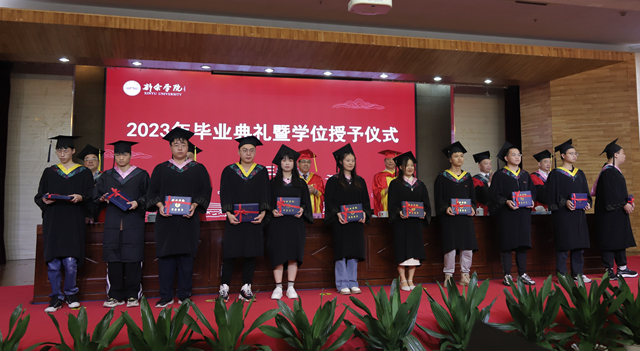 典礼上,党委委员、副校长陈裕先宣读《新余学院关于表彰2023届优秀毕业生的决定》,校领导为优秀毕业生颁奖。导师代表、毕业生代表相继发言,导师代表李水根博士勉励大家要努力奋斗,自强不息,成为新时代的奋斗者和追梦人。毕业生代表钟群表达了对母校的感激与不舍之情,祝愿毕业生们在往后的征程上谱写青春华章。